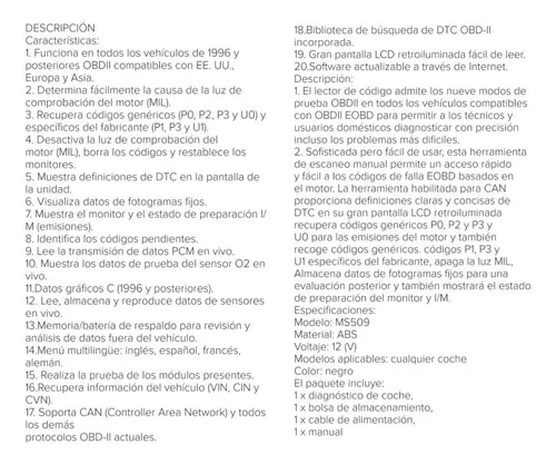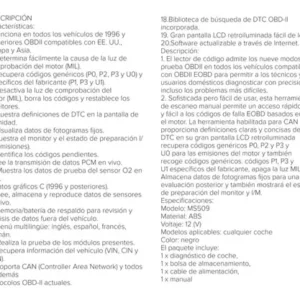 El lector de código de motor para coche OBD2 te ayudará a averiguar la causa de la luz de comprobación del motor (MIL) y leer/borrar el código DTC (códigos de error del motor), muestra la definición de código de error, reduce o evita costes de mantenimiento. Ahorra tiempo y dinero.