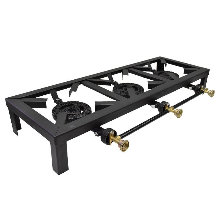 Cocina Fogon de TRES HornillaS a Gas elaborado en acero, gracias al diseño de su quemador hace mas eficiente la distribucion del calor en ollas y calderos de gran tamaño .