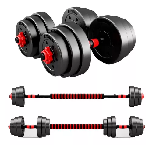 Ahora puedes optimizar la forma en que entrenas en casa de forma económica, con este set de mancuernas y barra unibles que tienen un peso máximo de 20 kilos.